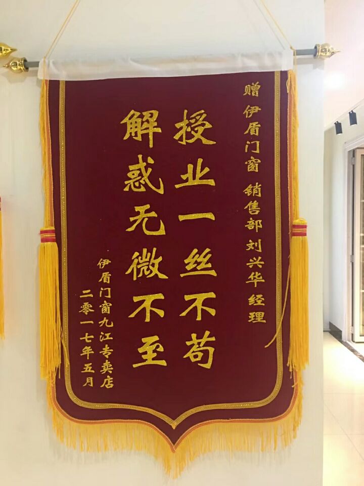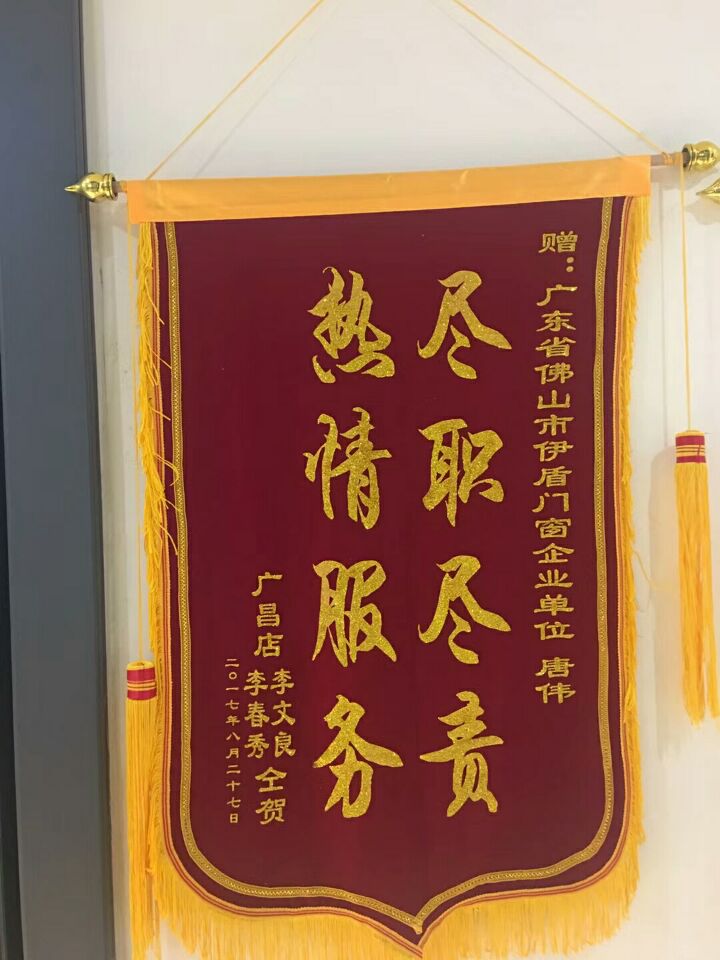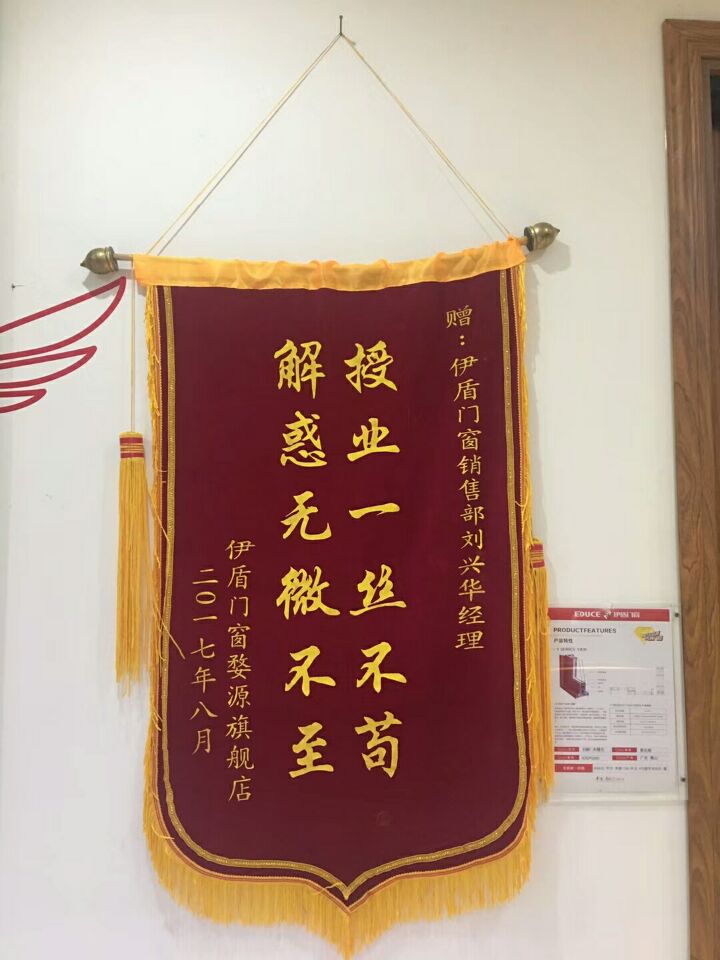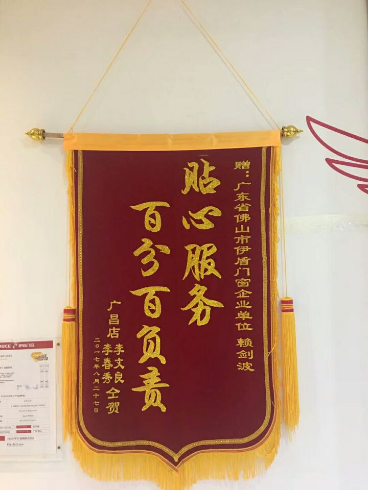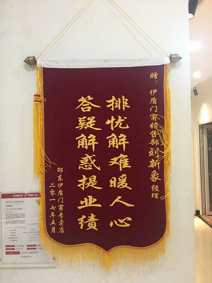 伊盾門窗一對一實地幫扶加盟商錦旗相贈